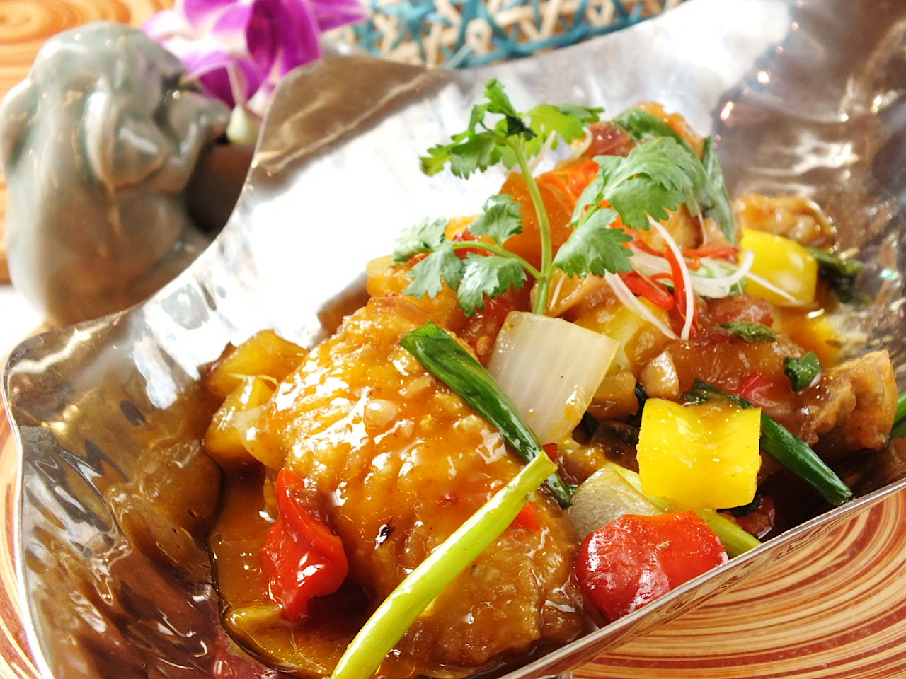 เราใช้ปลาเก๋า(grouper) ซึ่งว่ากันว่าเป็นปลาในตำนาน อาหารเขตร้อนที่ผสมผสานด้วยสามรสชาติจากธรรมชาติ (หวาน เผ็ด และเปรี้ยว) ที่ได้จากมะเขือเทศสด พริก และมะนาว