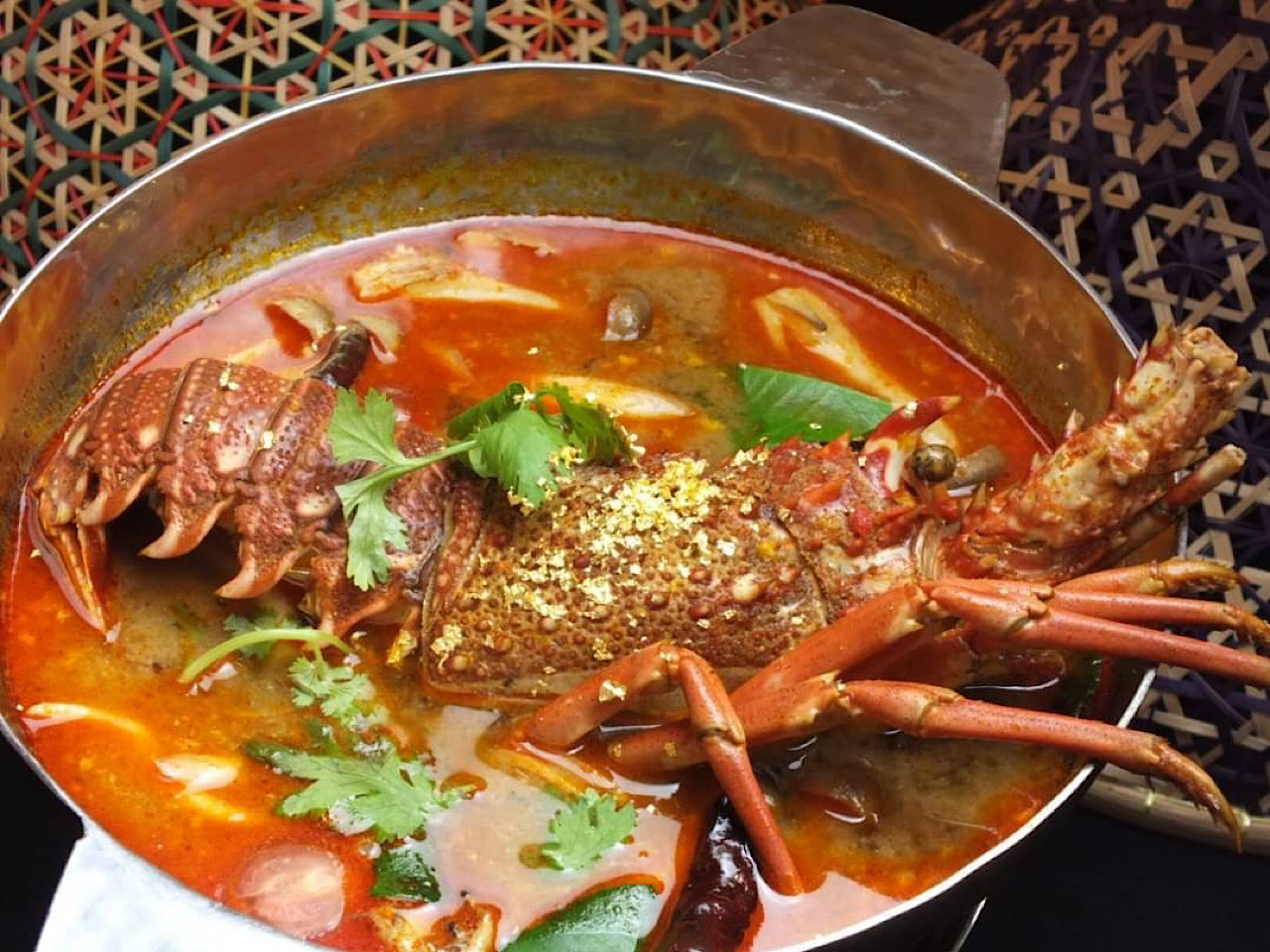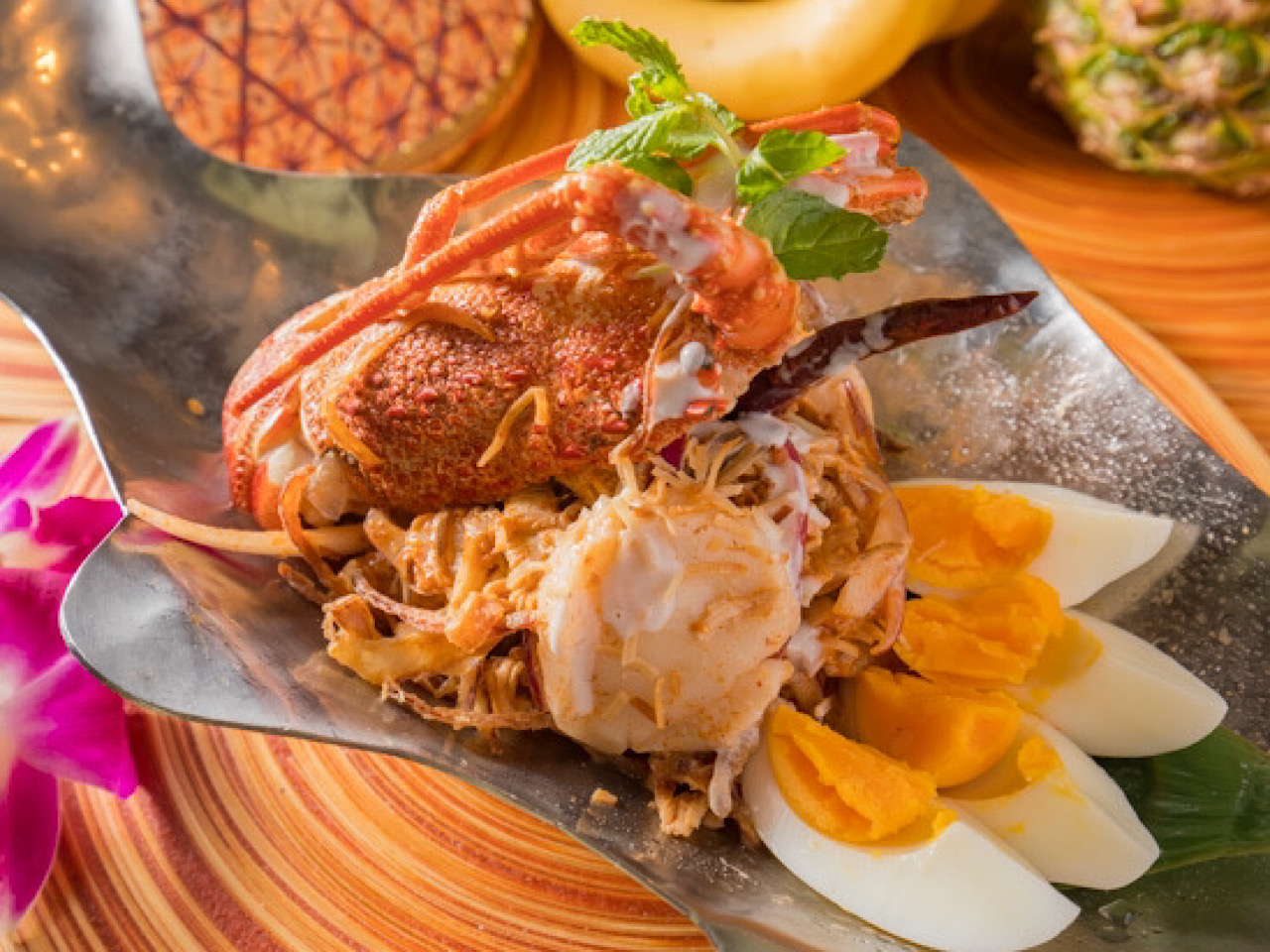 อาหารพื้นเมืองจากภาคใต้ของประเทศไทย หัวปลีนั้นกินง่ายและมีเนื้อสัมผัสกรุบกรอบ ใส่พริกและถั่ว เป็นเมนูที่มีเนื้อสัมผัสที่น่าสนุกสนาน กุ้งล็อบสเตอร์มีเนื้อสัมผัสที่หวานนุ่มและมีสีแดงสด